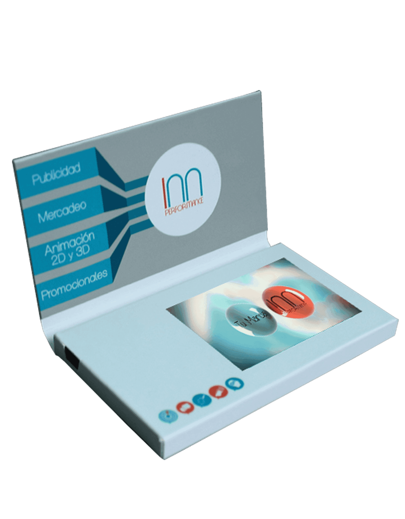 Multimedia Interactive Brochure (MIB), es una plataforma que tiene las cualidades del papel, con el poder del mensaje en video. A través de pantallas LCD integradas en los folletos, podrás ampliar la información y generar una publicidad más impactante. El MIB puede ser usado para folletos digitales de productos y/o servicios, cartas de restaurantes, cursos de capacitación, propaganda política, tarjetas de presentación, memorias visuales para eventos, etc.